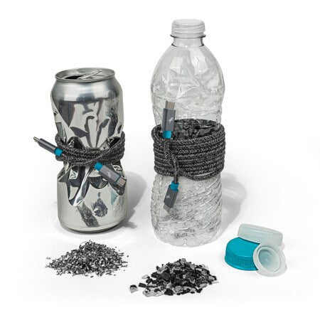 USB-C to USB-C cable made using a durable knit fabric derived from 100% recycled plastic bottles and recycled aluminum cable heads. A PVC-free overmold is used to ensure flexibility and efficiency, while meeting the highest safety standards to create a durable cable that is less harmful to you and the environment. Non-directional design allows for a quick and easy connection. And every product includes a recycled plastic bag so you can responsibly recycle your old tech for free, helping close the loop on electronic waste.
